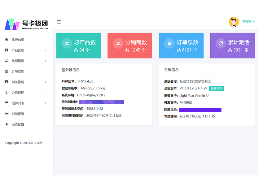 同步对接多平台,内置敢探号、172平台、号氪云三方平台对接接口,自动同步三方平台订单信息,支持敢探号一键上架,系统内置首页两套UI+商品下单页三套模板,订单查询支持实时物流信息、支持代理商自定义域名、泛域名绑定,内置敢探号、172平台、号氪云平台第三方接口!